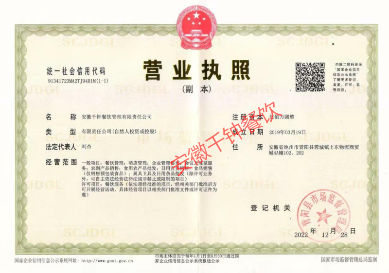 安徽千鐘餐飲管理有限責(zé)任公司